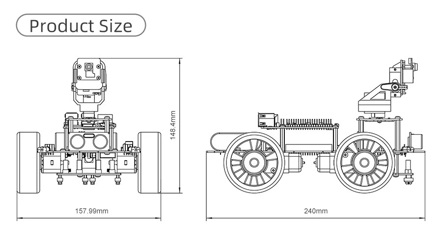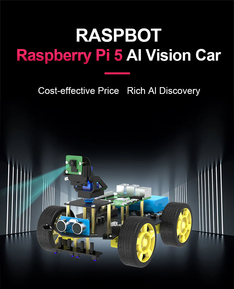 Raspbot V1 AI Vision robot car este special conceput pentru ca incepatorii sa invete AI la cel mai mic cost. Este ideal pentru placa de dezvoltare Raspberry Pi 5 4GB. Cu o placa de extensie multifunctionala pe post de sasiu, echipata cu patru motoare TT, o camera de inalta definitie, urmarire pe patru canale, modul cu ultrasunete, acest robot poate fi folosit ca masina cu telecomanda sau kit de invatare AI.